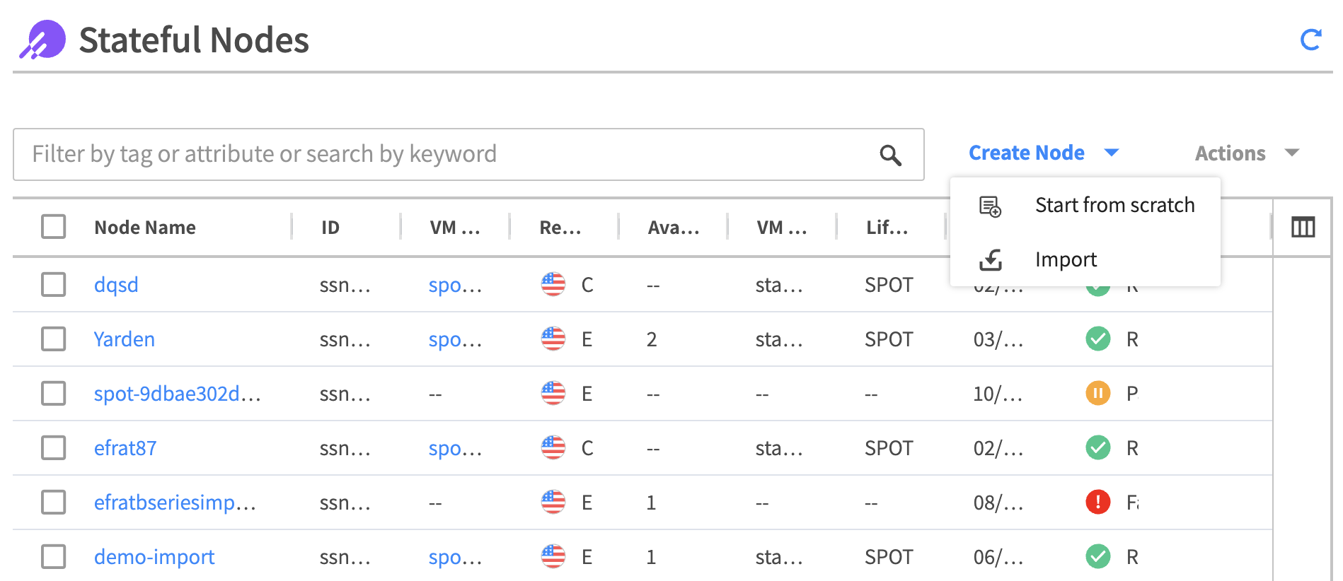 In the Spot Console, go to Elastigroup > Stateful Nodes > Create Node > Start from scratch.